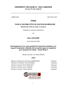 Développement d'un score prédictif de nécessité immédiate d'un support respiratoire utilisable dès le premier appel en régulation pour dyspnée de l'adulte - Etude Redy-V.