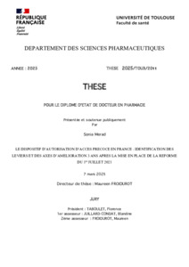 Le dispositif d'autorisation d'accès précoce en France : identification des leviers et des axes d'amélioration 3 ans après la mise en place de la réforme du 1er juillet 2021.
